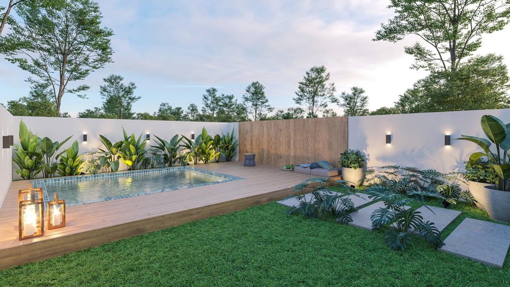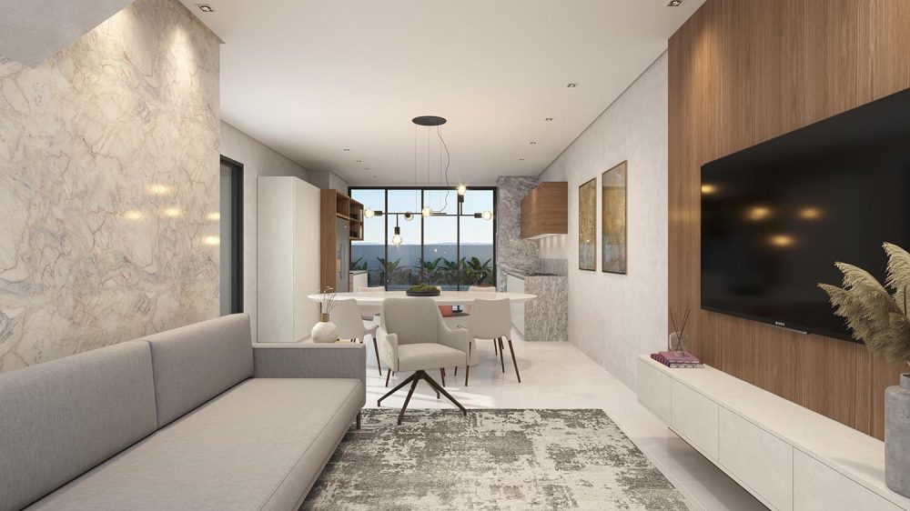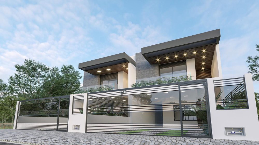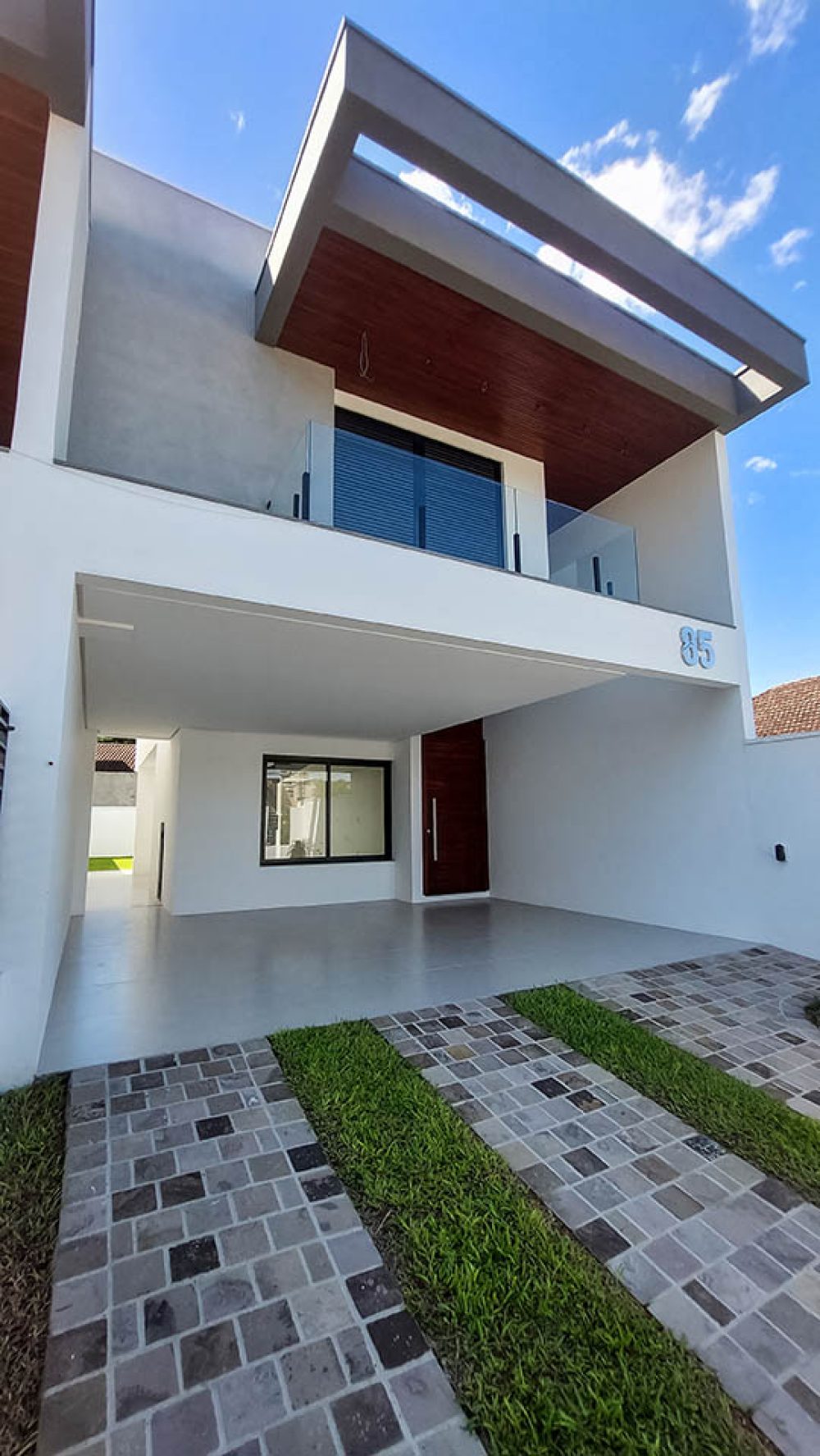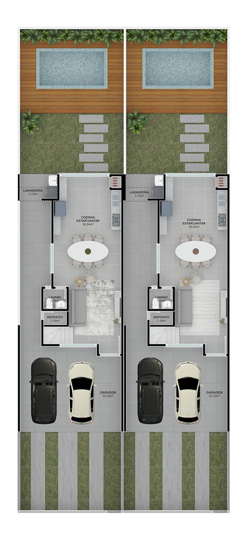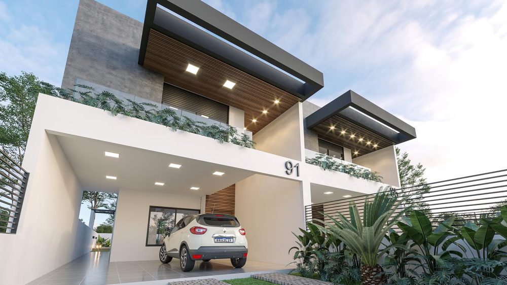 - Detalhes de revestimento no teto da fachada em madeira de lei;