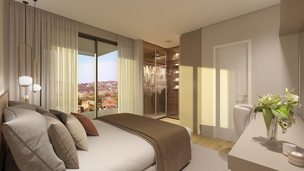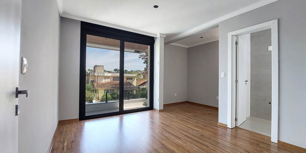 Uma suíte com sacada, espaço para closet, espaço para camarim, rouparia ou armário